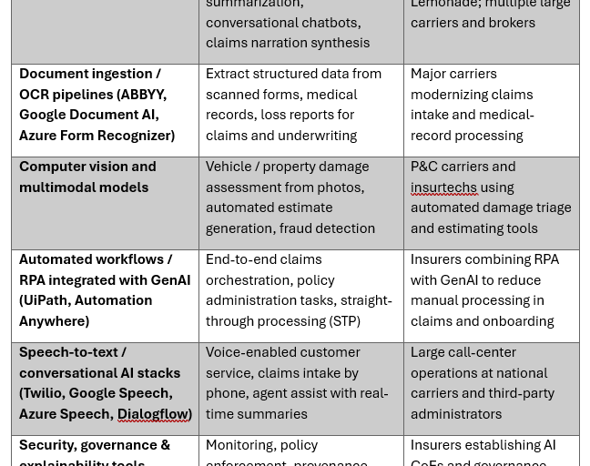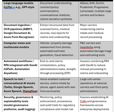 I am sharing my thoughts on a Deloitte article and a sample technology stack I created. The article is found here. It is compelling as we look at the landscape across companies and how to implement Gen AI. The survey was conducted by Deloitte in June 2024, in AI years that could be "4" years at the AI pace of innovation. 200 US insurance companies. A few interesting facts: